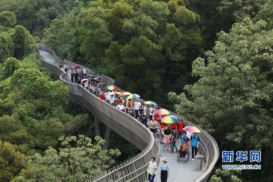 新華網(wǎng)福州電(蔣巧玲)6日,福州金牛山公園的福道迎來(lái)了一群特殊的游客——12位殘疾人朋友在青年志愿者的幫助下“走上”福道,欣賞榕城初夏的美景。