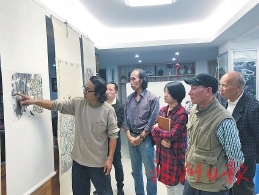孫健青(左一)與居民分享書(shū)畫(huà)創(chuàng)作心得。