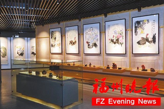 正月初六,《金雞三唱迎朝暉》吳建峰中國畫展在天下西湖沈紹安藝術(shù)館開幕。雞年開春,以雄雞為主題的各種“雞”慶國畫顯得尤其應(yīng)景,吸引了不少市民前來一沾喜氣。