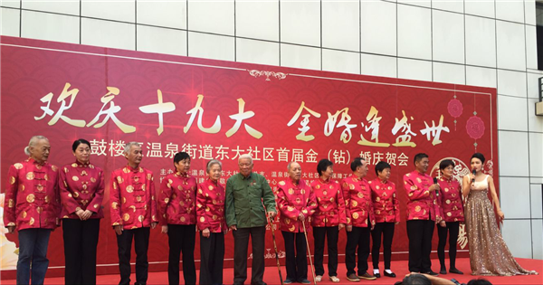 10月27日上午,由溫泉街道東大社區(qū)主辦,福建省居敬孝道文化交流中心及東大社區(qū)黨建聯(lián)盟單位協(xié)辦的“歡慶十九大,金婚逢盛世”重陽(yáng)節(jié)主題活動(dòng)在灰爐新苑中心花園舉行,為轄區(qū)老人送上節(jié)日的祝福。
