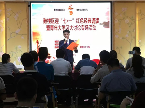 高舉團旗跟黨走,青春奮進新時代!為紀念黨的97周年華誕,深入學習貫徹習近平新時代中國特色社會主義思想和黨的十九大精神,引導廣大團員青年樹立“四個意識”,堅定“四個自信”,深入開展“思想再解放、觀念再更新、發展再轉型”大學習大討論活動。7月1日晚,鼓樓區舉行迎“七·一”紅色經典誦讀暨青年大學習大討論專場活動。