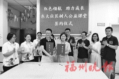 5月29日,福建樹人教育與鼓樓區東大社區簽約授牌,在社區已有的少兒成長服務站硬件基礎上,配備專業師資團隊,共建社區公益課堂。據了解,該公益課堂建成后,首期將接受社區內30位孩子,免費提供下午放學后的課后服務工作,重點在于作業指導,后期樹人教育將引入特色科技活動、開展城市生存挑戰賽等,豐富孩子們的課余生活。