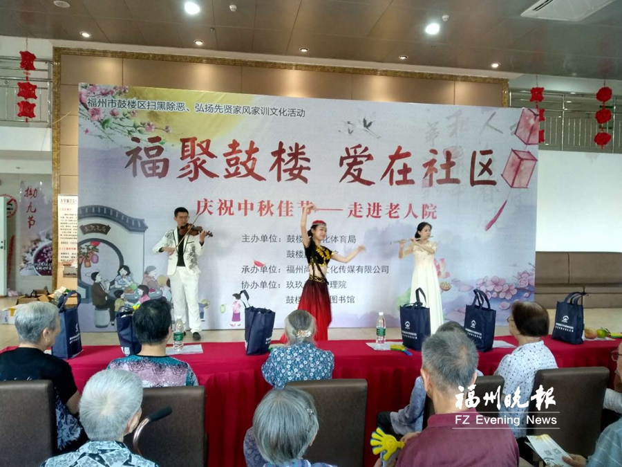 鼓樓新聞網(wǎng)9月16日訊(福州晚報通訊員 林端黎 攝)14日上午,鼓樓區(qū)文體局、文化館等單位,組成中秋孝老小分隊,帶著文藝節(jié)目,來到閩侯玖玖養(yǎng)老護理院慰問。據(jù)悉,這是鼓樓區(qū)文體局、文化館等發(fā)起的“慶祝中秋佳節(jié)——走進老人院”系列活動之一。